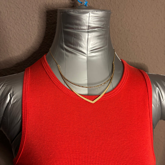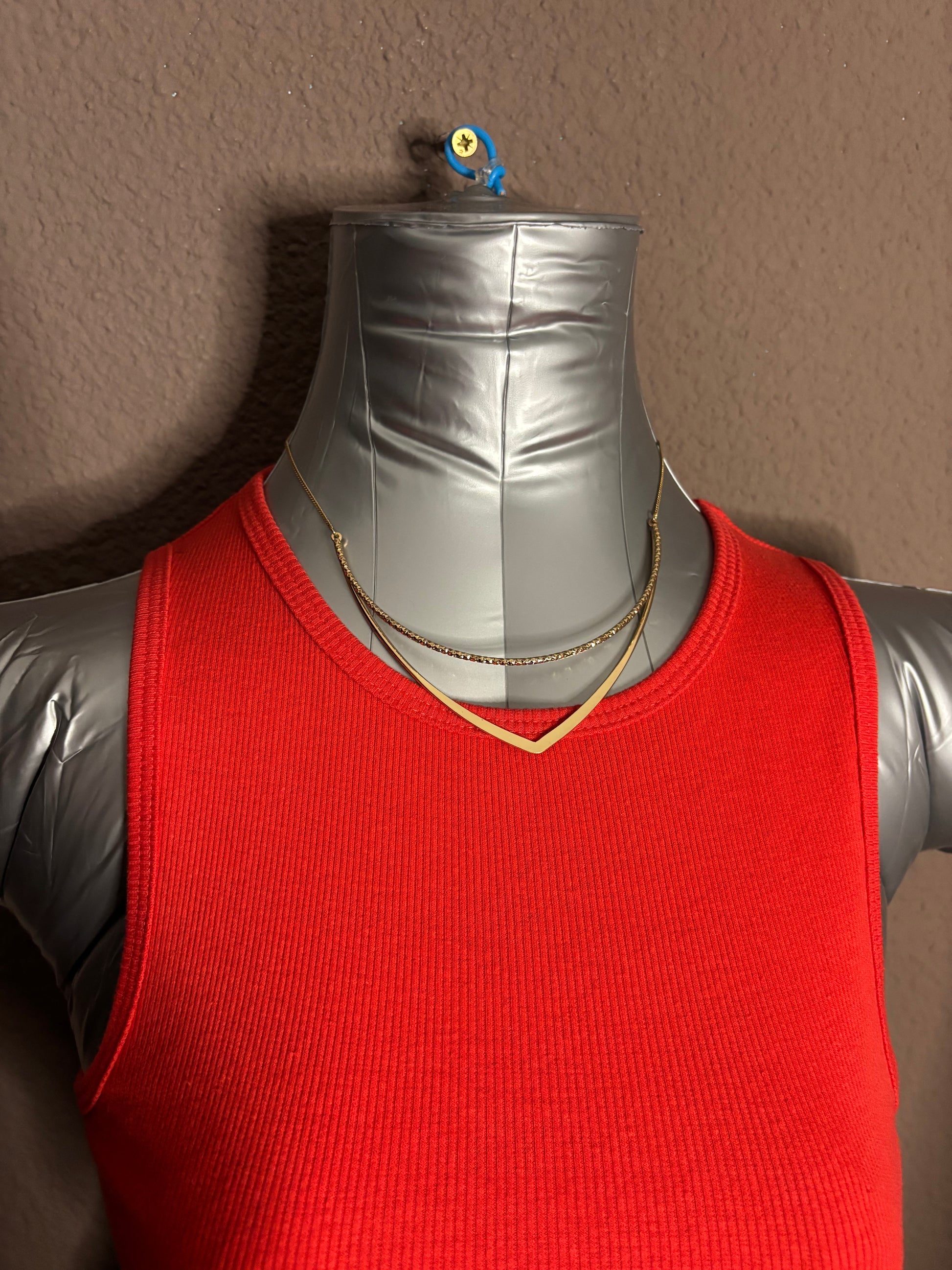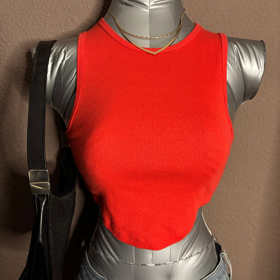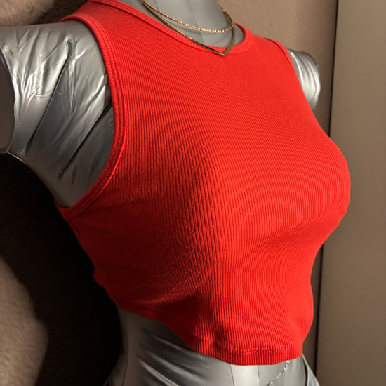 Haut rouge côtelé coupe ajustée. Un basique indispensable. Disponible également en blanc.