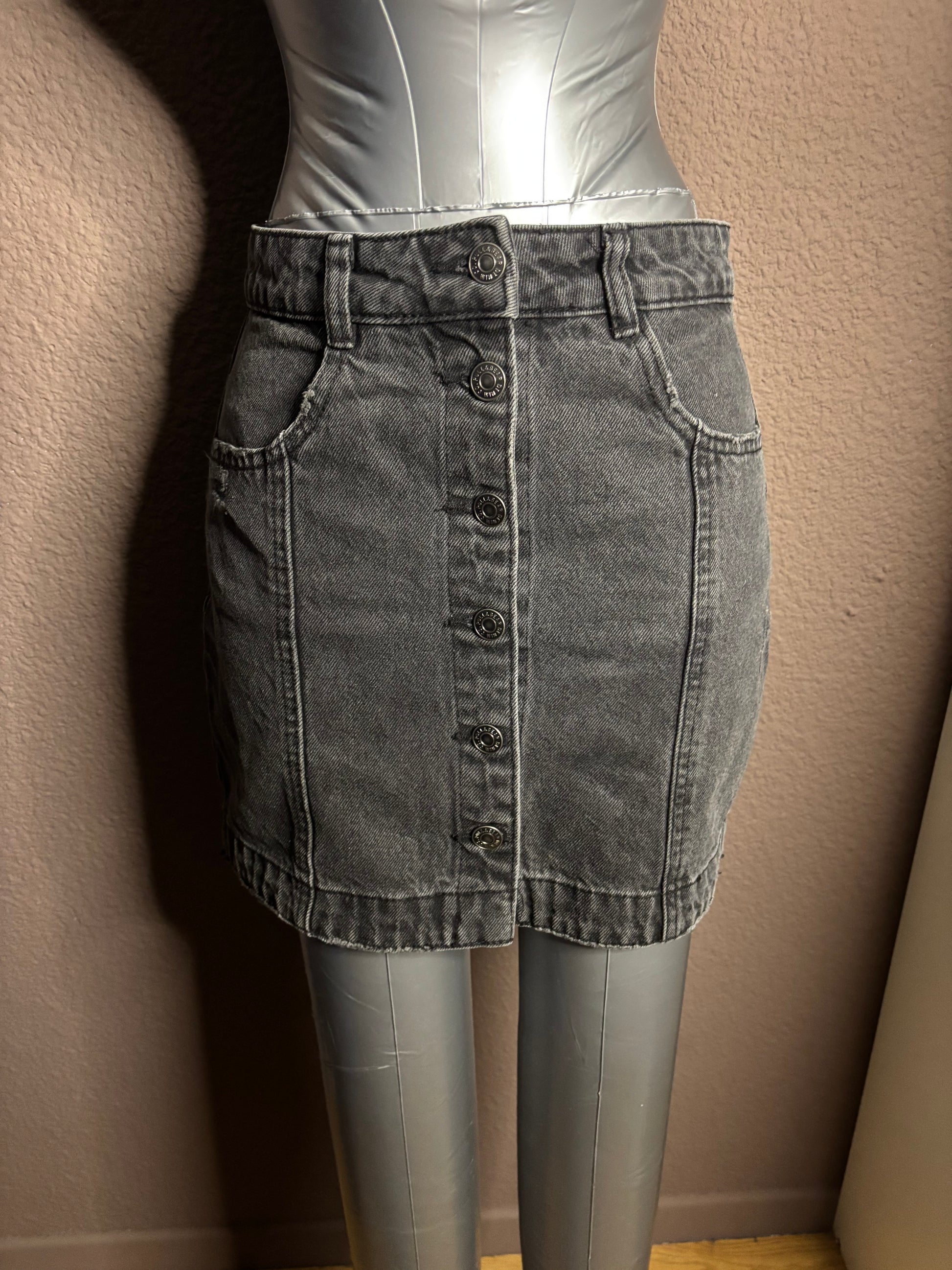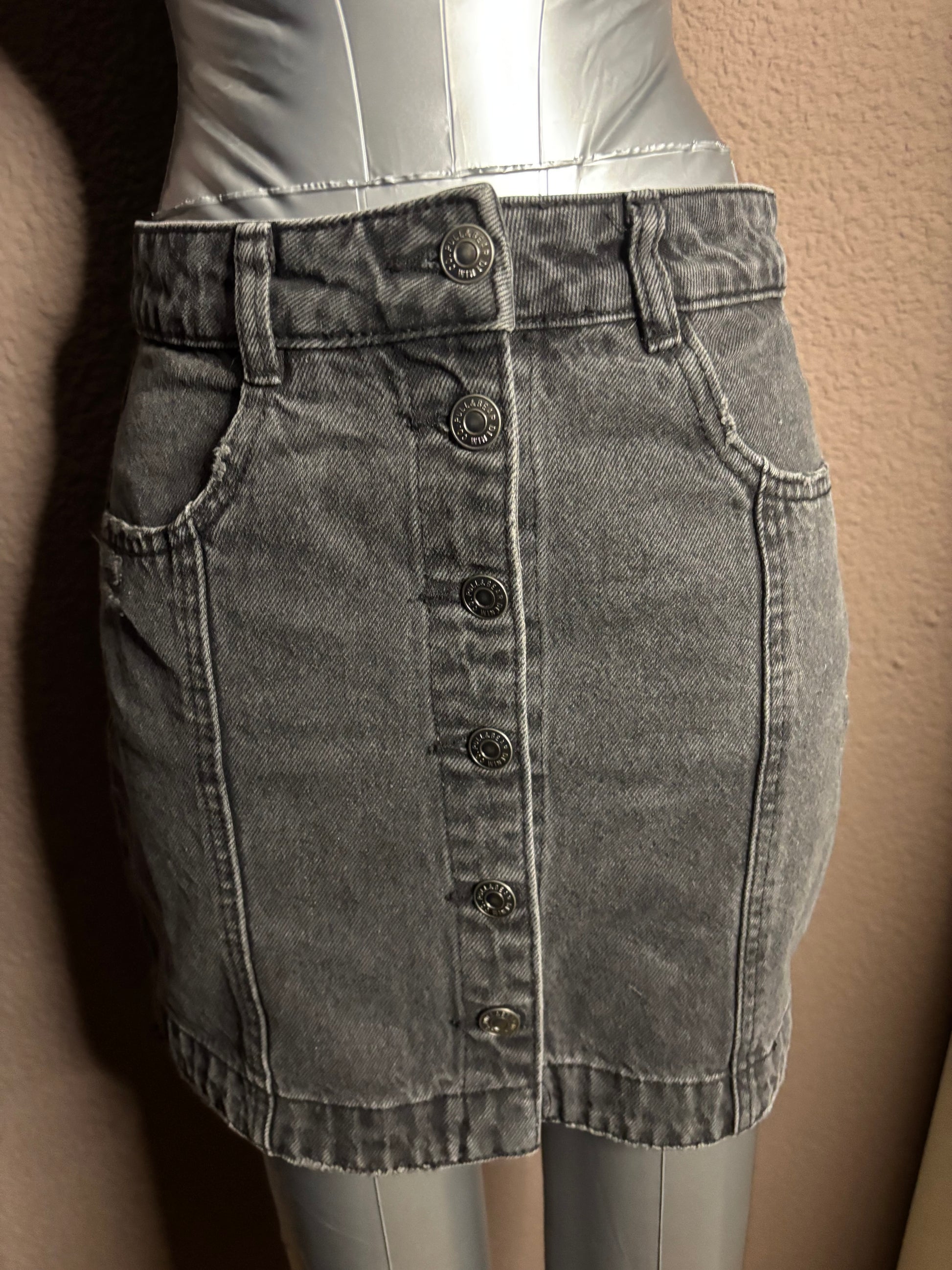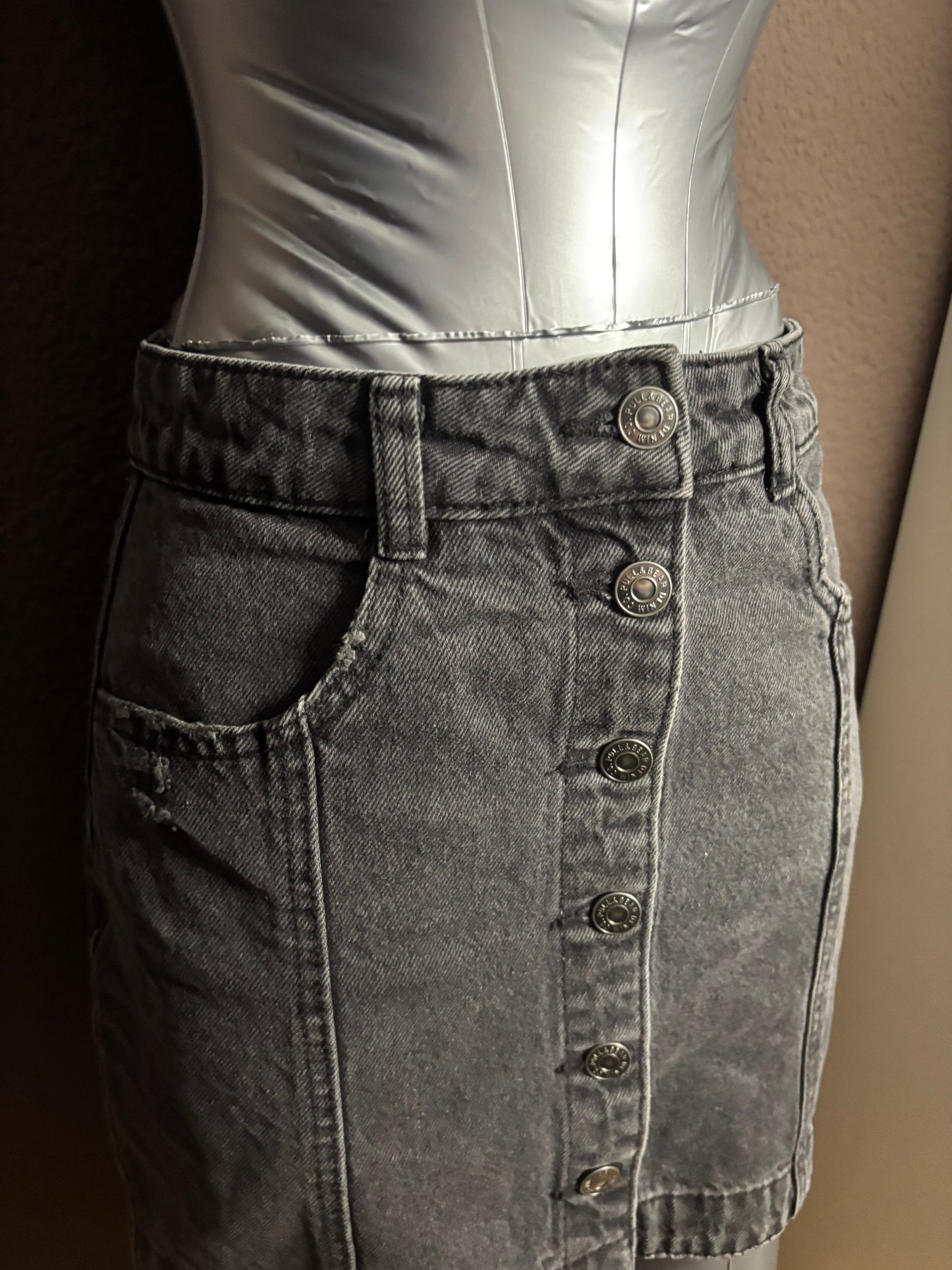 Jupe en jean noire boutonnée – Pull&Bear – Taille S
