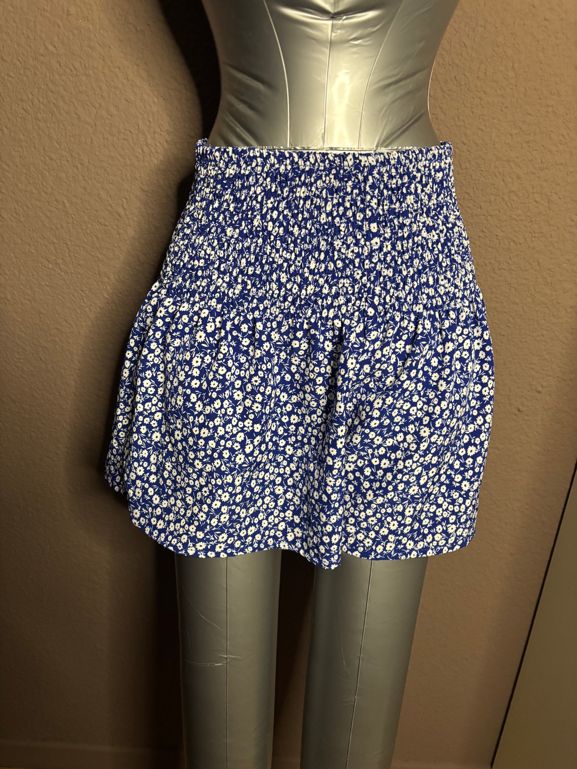 Jupe-short bleu & blanc fleurie – Shein – XS