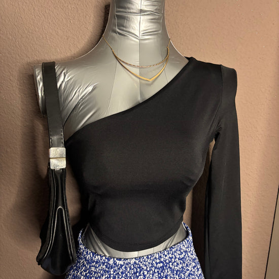 Top noir asymétrique ultra tendance de chez Bershka, parfait pour un look moderne et élégant ✨